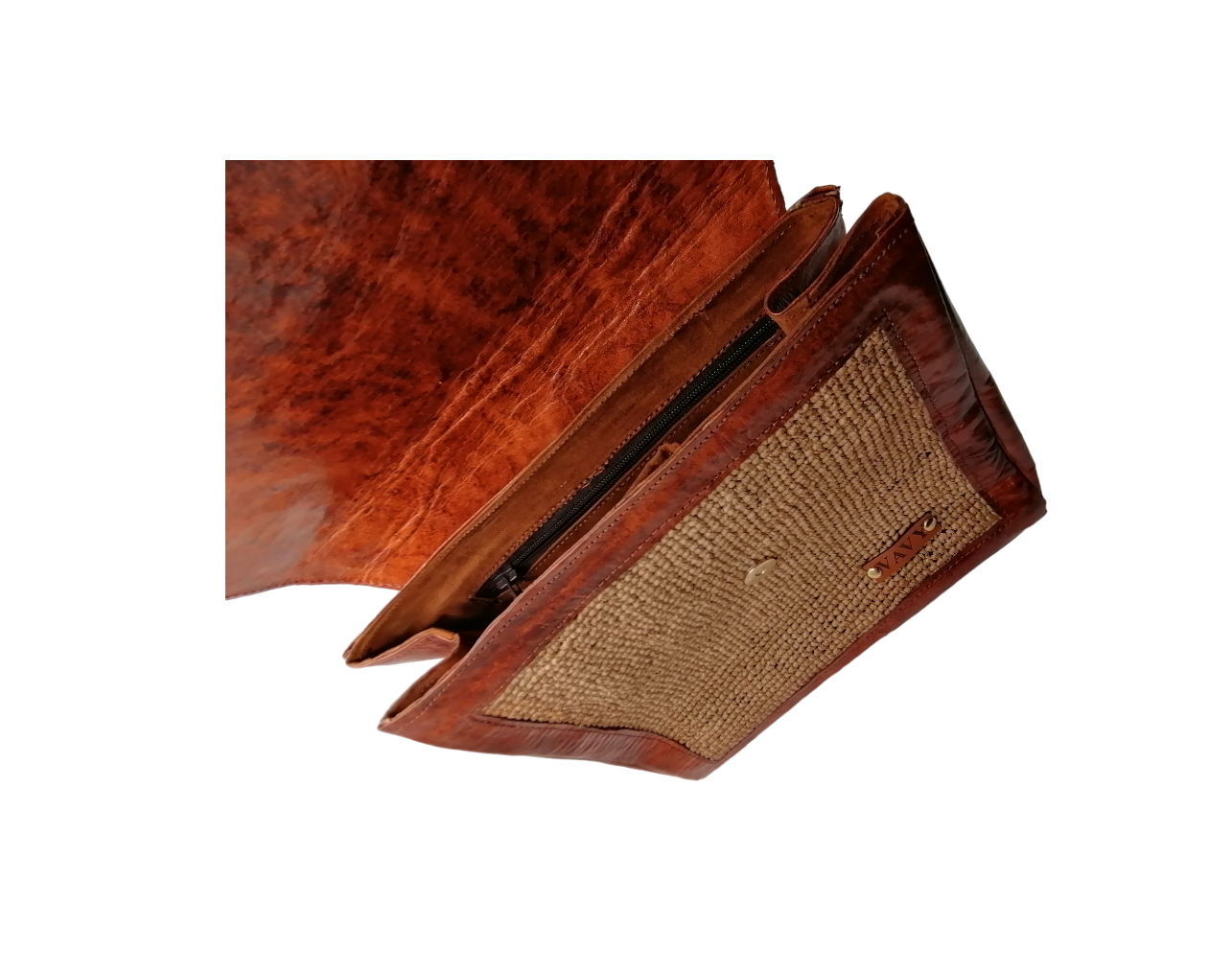 - Matière : Extérieur en cuir de zébu et raphia crochet, intérieur doublé