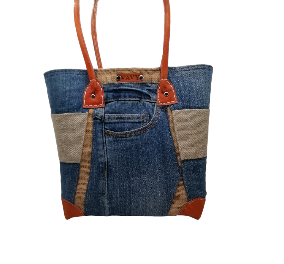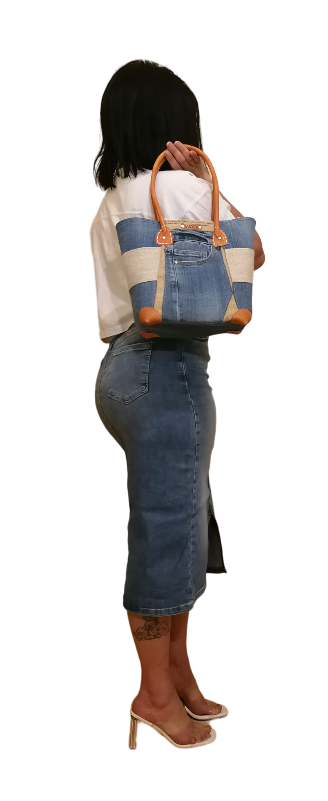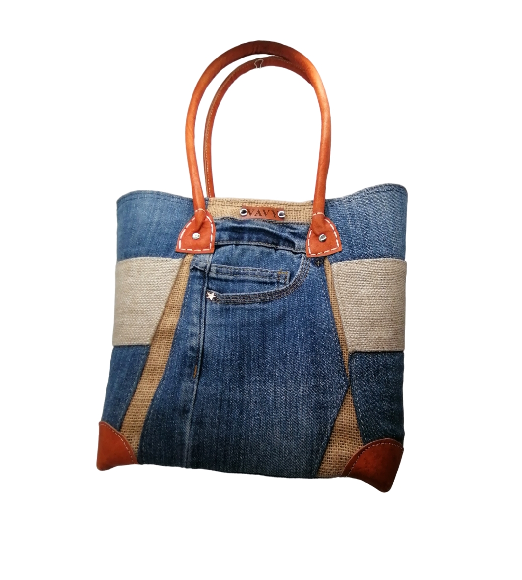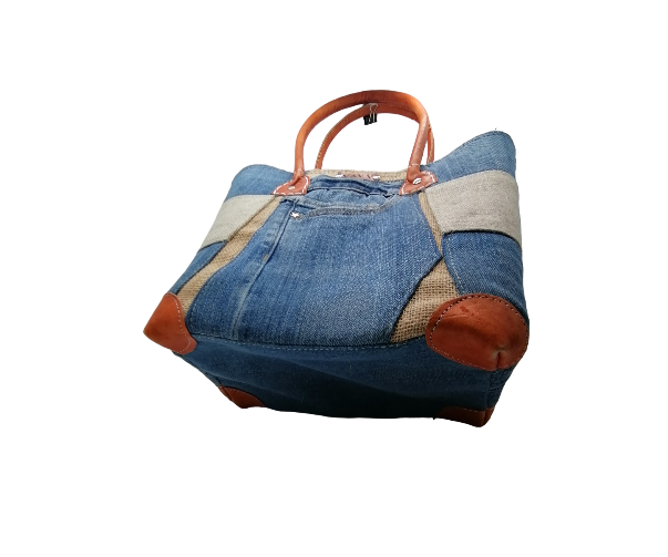 - Matière : Paille naturelle, jean recyclé, jute, cuir de zébu