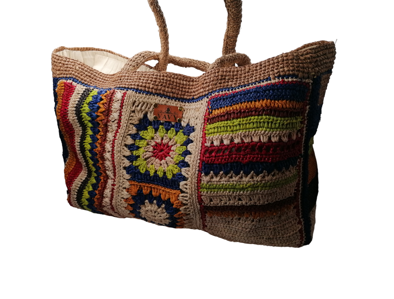 SAC MIRANA GM EN RAPHIA MULTICOLORE